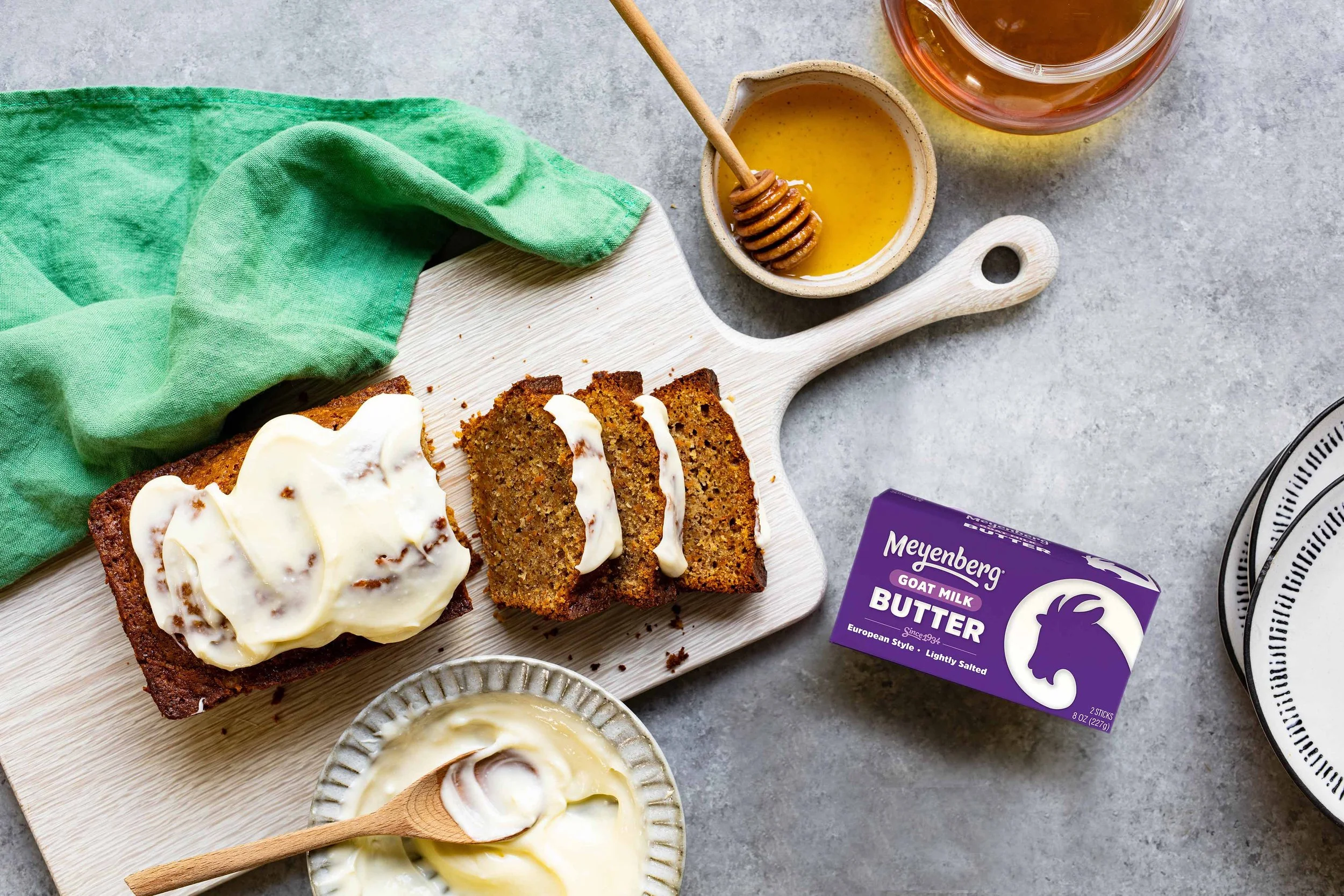 Add to the pre-greased bundt cake pan. Bake at 325 degrees for about an hour, it should be ready when you can stick a fork through it and it comes out clean. Allow the cake to cool, then slice and slather with goat milk butter or create a frosting of choice.